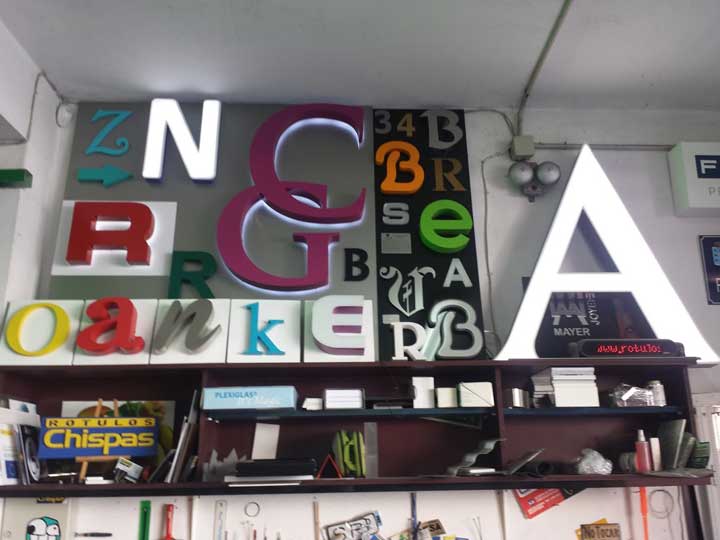 • Letras corpóreas: Neón, aluminio, vinilo, metacrilatos, etc
